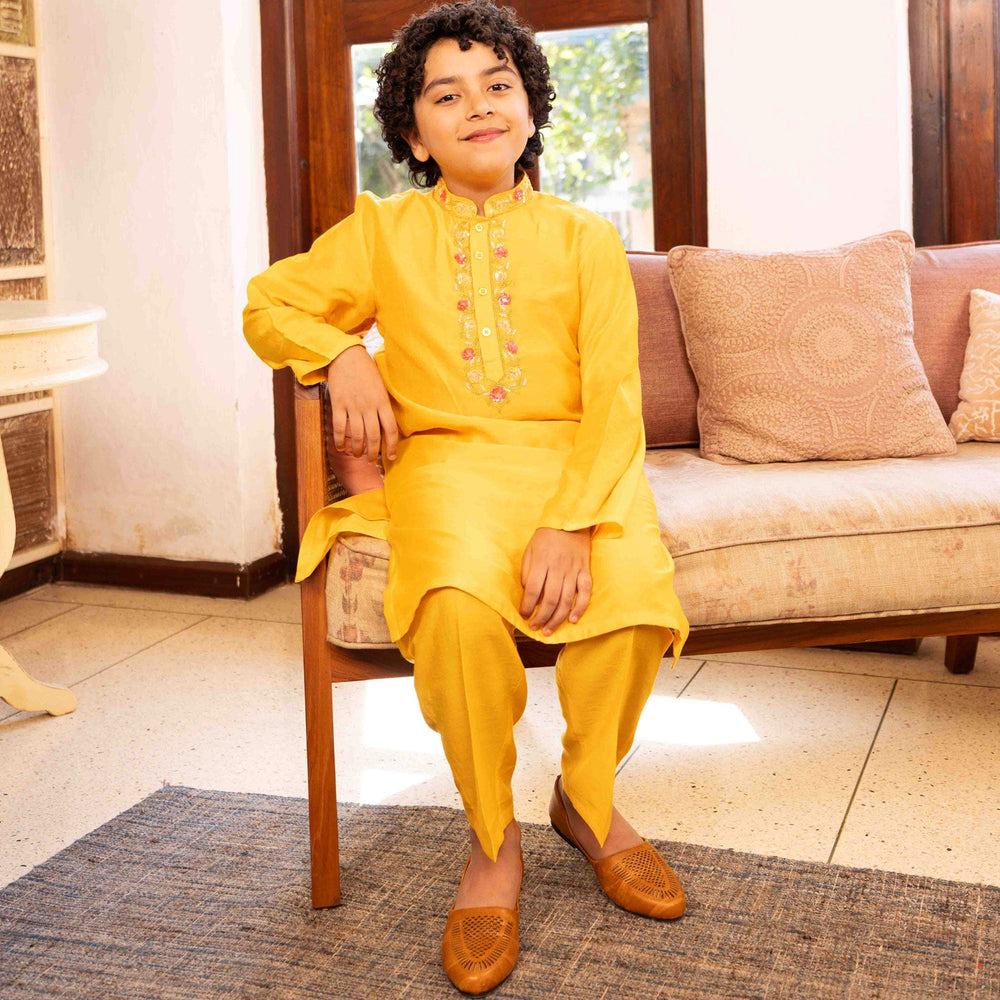 Our emphasis on luxurious fabrics, care for details, and creative designs guarantees that your child not only looks great but feels comfortable. The mehndi kurta pajama, the baby kurta pajama, or even the kurta pajama for a 14-year-old boy is perfectly topped with unmatched quality and style.