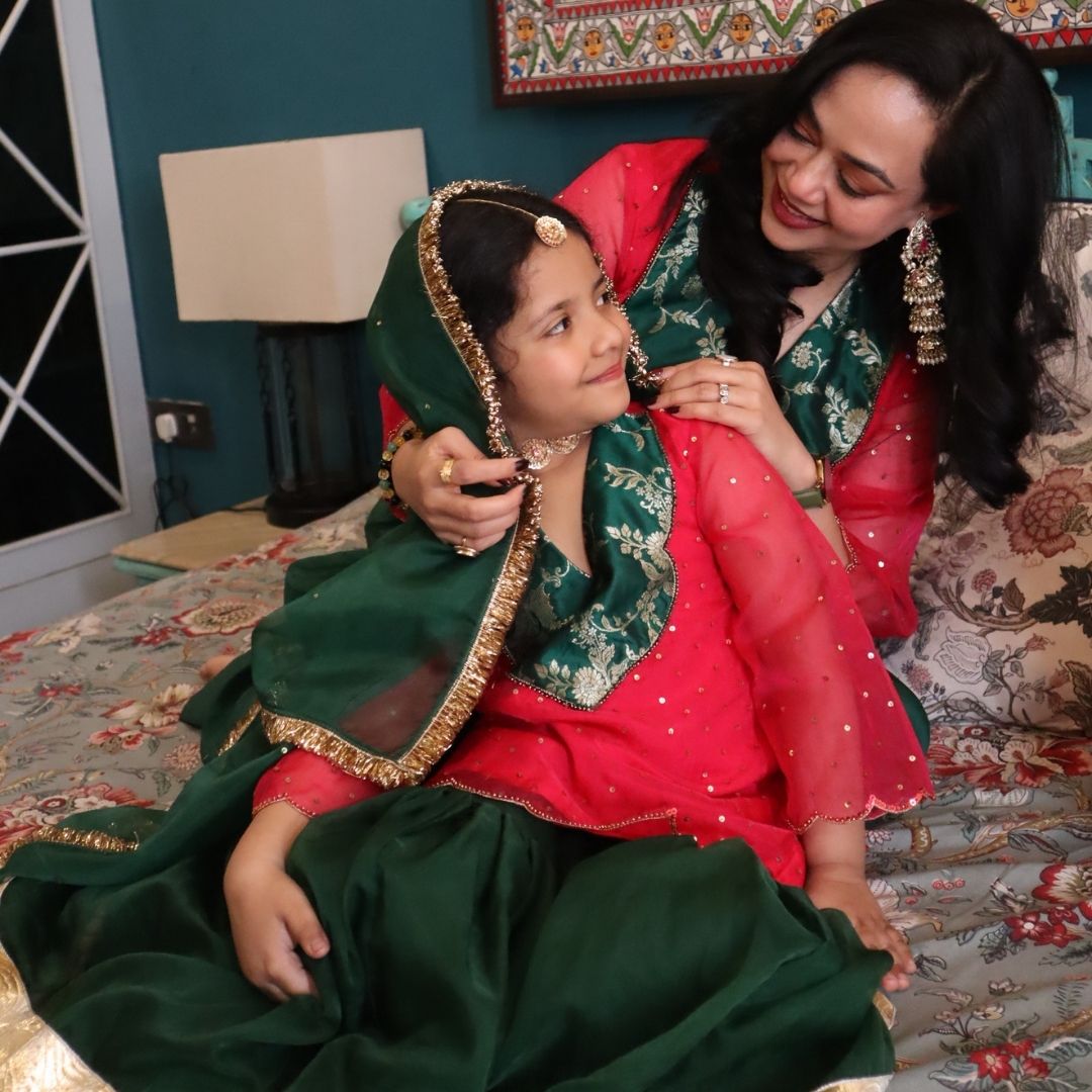 Perfect for mothers and daughters, this ethnic wear embodies love and tradition, making every moment together even more special. Whether it's a family gathering or a festive celebration, this outfit ensures you both shine in style and grace. Celebrate the bond you share with a look that radiates warmth and beauty, perfect for creating unforgettable memories this season.